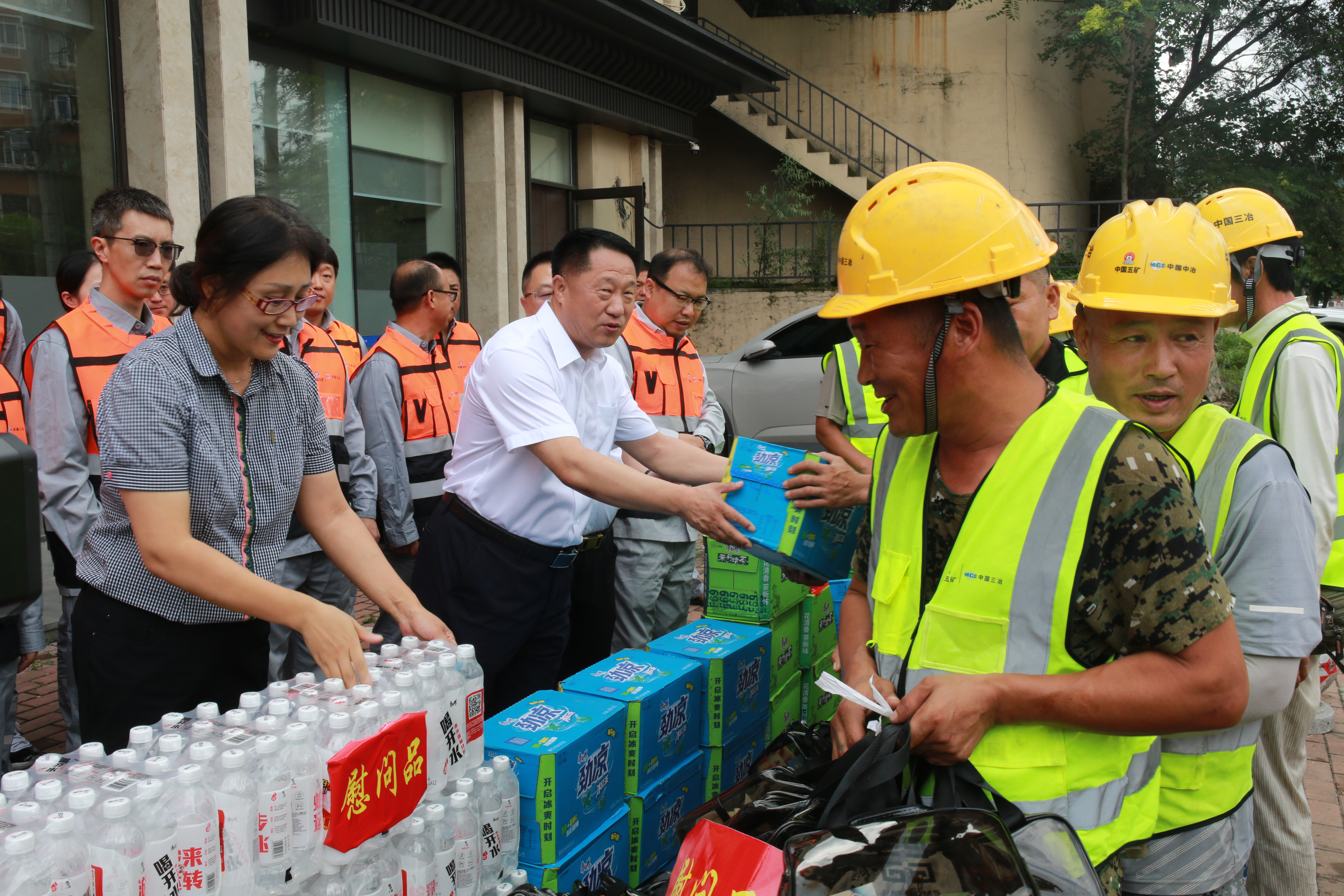7月24日,鞍山市總工會黨組成員、副主席趙洪霞一行在中國三冶黨委副書記、工會主席馮永德陪同下到中國三冶鞍山市立山區老舊小區改造項目開展“工會送清涼、防暑保安康”慰問。